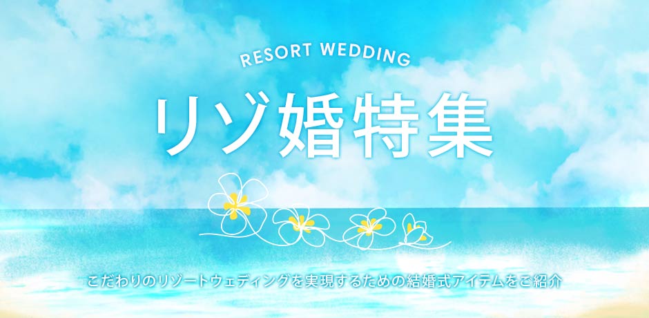 ハワイやグアム、沖縄など国内外のリゾートウェディングにぴったりのアイテムをご紹介。リゾートならではのムードを盛り上げる素敵なアイテムを見つけてくださいね。