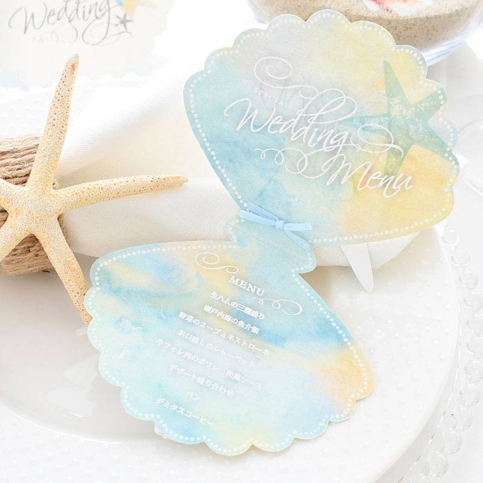 ファルベにはリゾート挙式にぴったりな当日アイテムもたくさんあるんです!海にまつわるデザインやマリンテイストのアイテムは、国内外問わず、リゾートや海辺、夏のウェディングにもおすすめです。