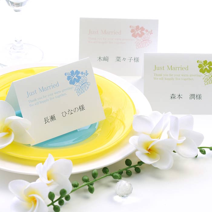 ハワイの定番アイコン、ハイビスカス。ファルベでも海外挙式の方や夏のリゾート挙式のお二人に人気のあるデザインです。ペーパーアイテムや、少人数のリゾ婚におすすめな席次ボード、両親贈呈品など幅広くラインナップ!