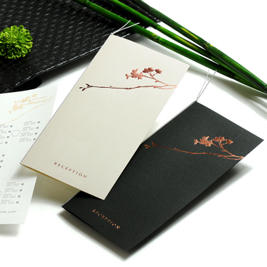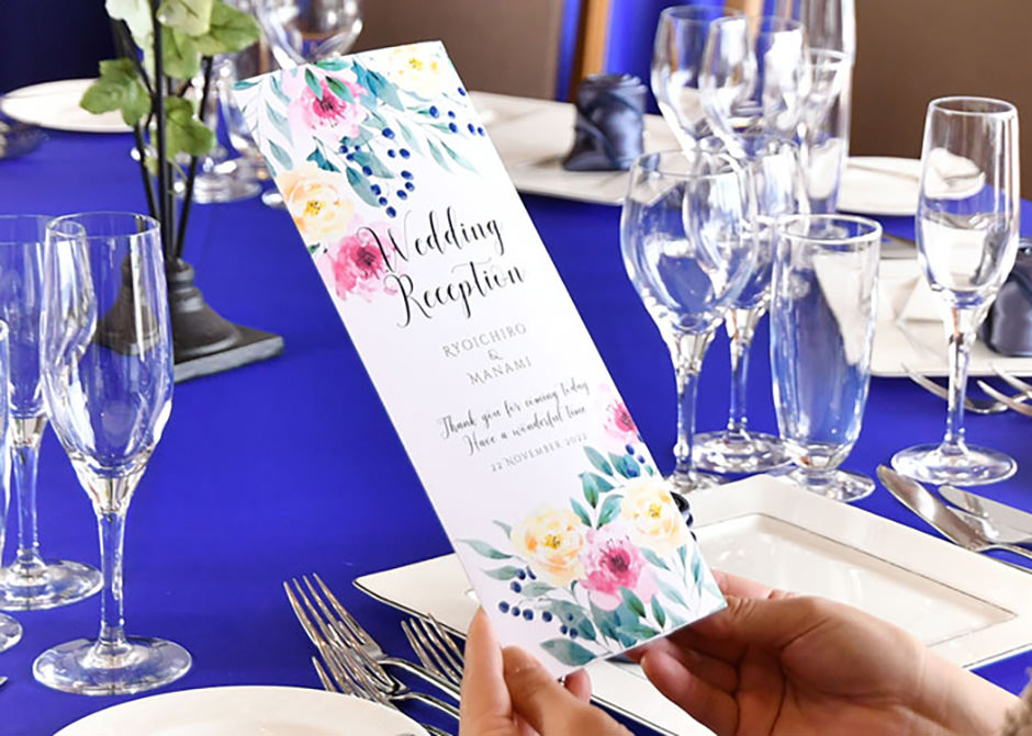 一般的には受付でお渡ししてゲストはその席次表をご覧になって自分は会場のどこのテーブルでどの位置に座るのかご確認いただきます。お席には席札を置いてお迎えしましょう。