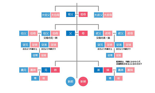 席次表にお名前を表記する方は基本的に全て肩書きを添えられます。中でも父母の兄は「伯父」、父母の姉は「伯母」、父母の弟は「叔父」、父母の妹は「叔母」など、読み方は同じでも漢字でかき分ける場合があるので注意して。
