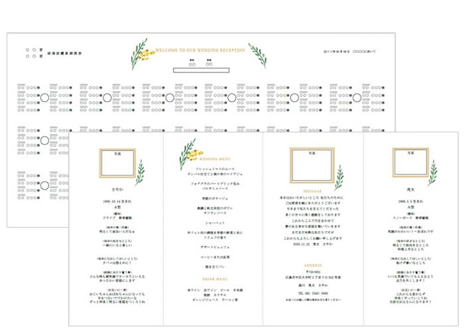 内容は、誰もが楽しく過ごせるように読み物を載せたり、おふたりらしさも大切にした席次表がおすすめです。 席次面の裏面に印刷できるようテンプレートもご用意しています。(→席次表テンプレートはこちらから)