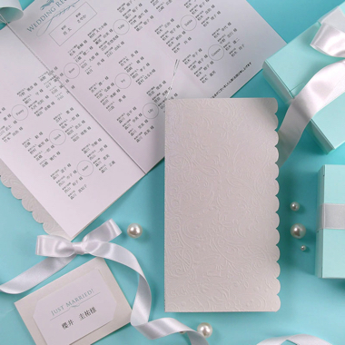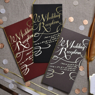 A4用紙サイズの二つ折りからA3用紙サイズの三つ折り相当が一般的ですが、形状に決まりはないので観音開き・ロールタイプ・ブックタイプなど色々な形状の席次表が存在します。