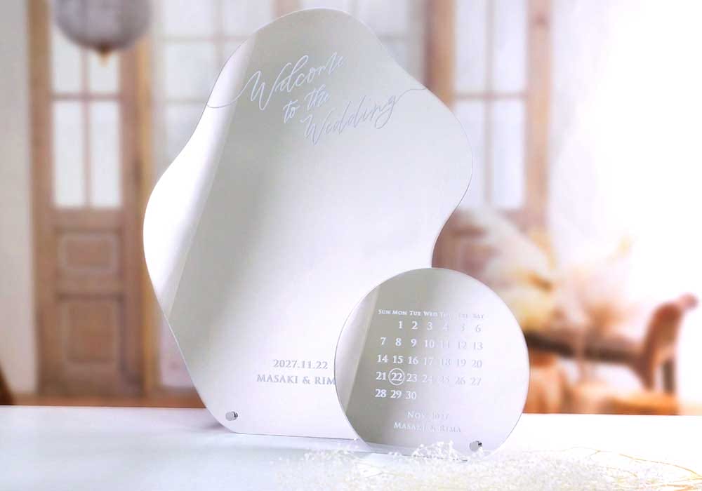 トレンドのウェルカムミラーをはじめウェルカムスペースをおしゃれに飾る20点のアイテムが揃う超おまとめセット。韓国風ウェーブミラーウェルカムボードは、ゲストみんなでわいわいセルフィ―ショットを撮ってシェアできるSNS映え必須のアイテム。大切な結婚式の日に丸をつけたカレンダーミラーも大人気!