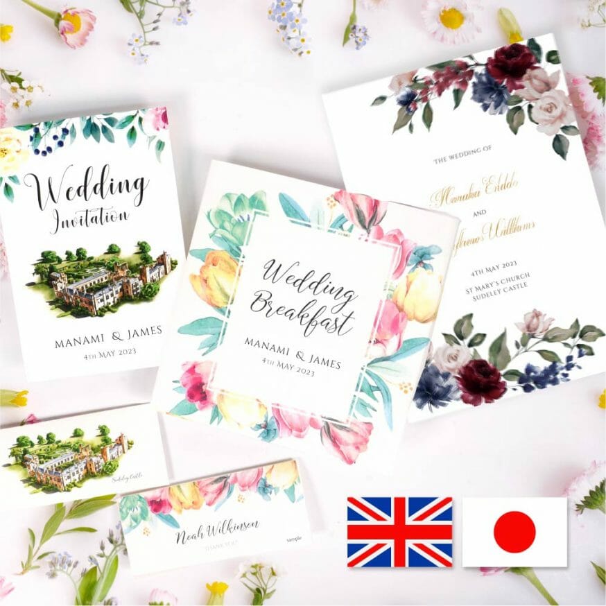 紙招待状では、両方の言語を併記するケースが多いよう。お互いの文化を尊重しながら、違いも楽しめる…そんな国際結婚の素晴らしさを表すこともできますね。