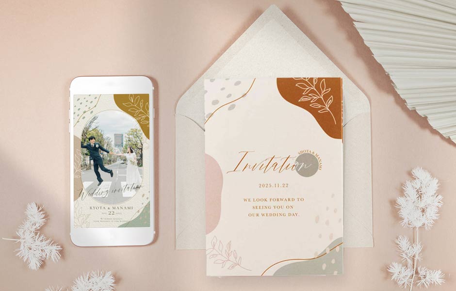 さらには、どちらの国で結婚式を開催するかによってWEBと紙で送り分ける方法も。海外への郵送は時間も費用もかかるので、節約にもなります。ただ、ゲストの居住国=母国語とは限らないので、言語を併記するなど配慮が必要な場合もあります。