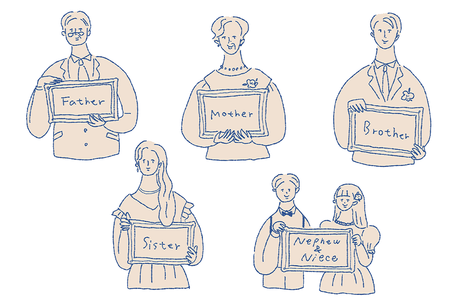 | 両親+兄弟姉妹+祖父母 (~14名くらい) |
