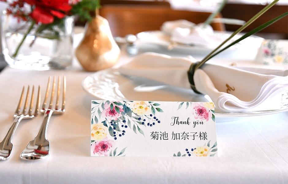 ゲストのお席には席札でお出迎えを。おもてなしの意味でも必ず準備するようにしましょう。
