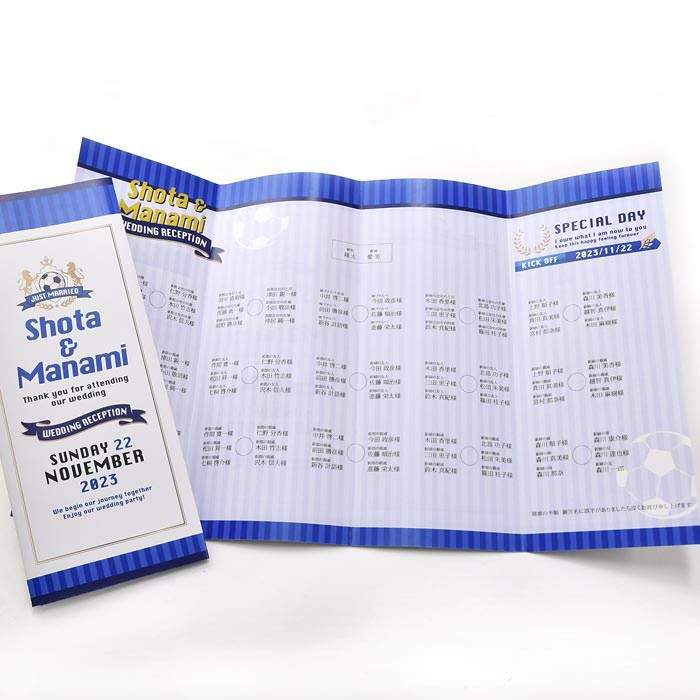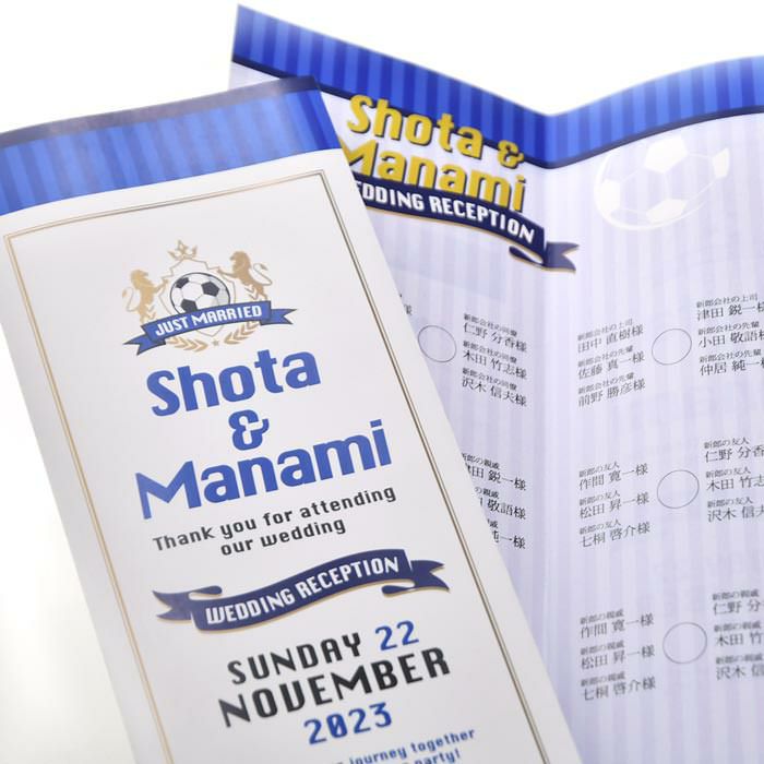 他の画像を見る 入力印刷付き サッカーファンのためのおしゃれ席次表 【完全お任せ】サッカーSTYLE席次表(入力・印刷込) 定価 ¥ 880 のところ 販売価格 ¥ 770 税込 商品について 閉じる サッカー好きのお二人にぴったり!サッカーをテーマにしたスタイリッシュな席次表です。あちこちにちりばめられたサッカーボールや「KICK OFF」の文字など、遊び心あふれるデザインが魅力。 詳細を見る お気に入り登録