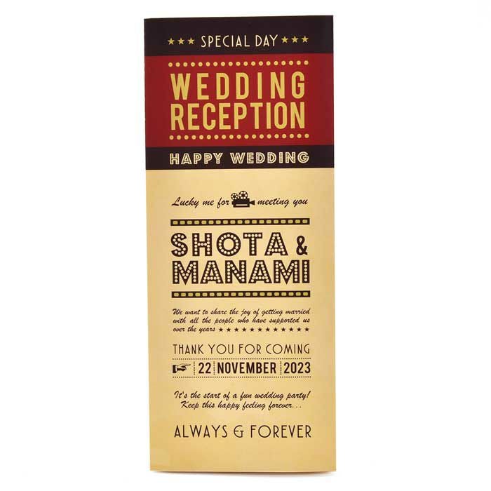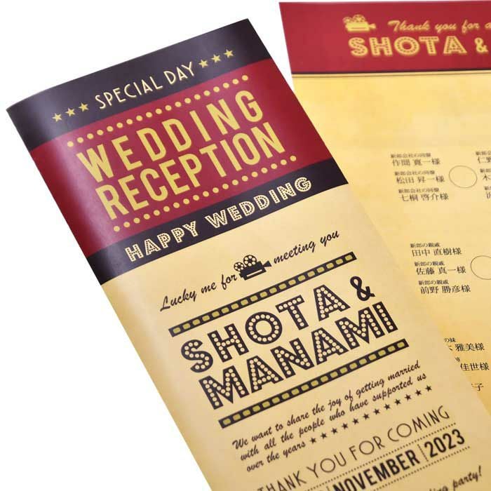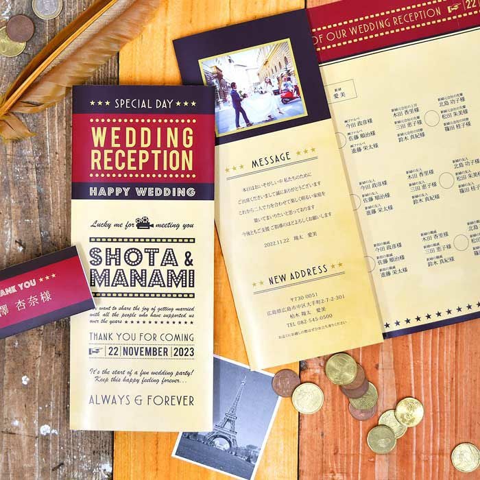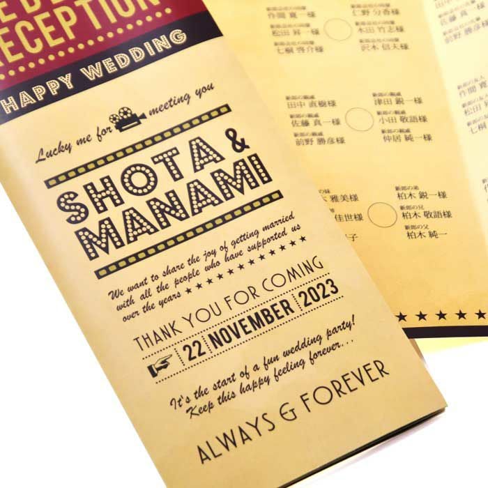 他の画像を見る 入力印刷付き 映画好きのためのこだわりデザイン 【映画テーマ】シネマSTYLE席次表(入力・印刷込) 定価 ¥ 880 のところ 販売価格 ¥ 770 税込 商品について 閉じる 映画好きのお二人にぴったりの席次表。映写機やフィルムなど映画モチーフをちりばめて、クラシカルでレトロっぽさも感じるおしゃれなデザイン。結婚式を感動の映画作品のように演出しませんか? 詳細を見る お気に入り登録
