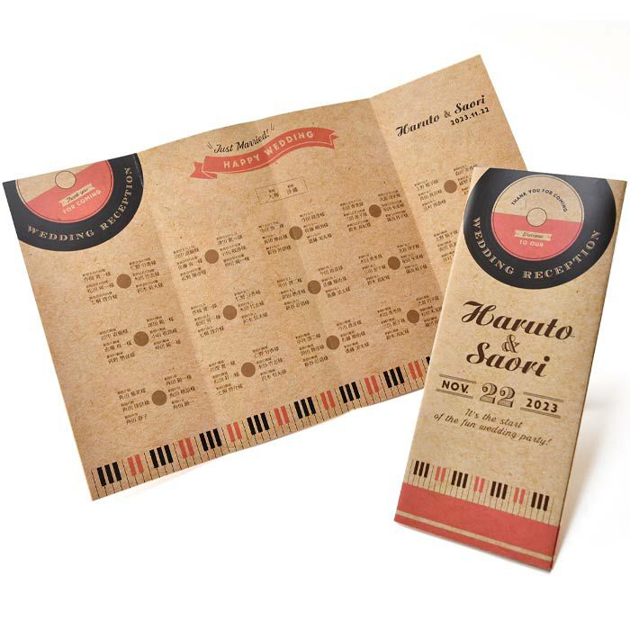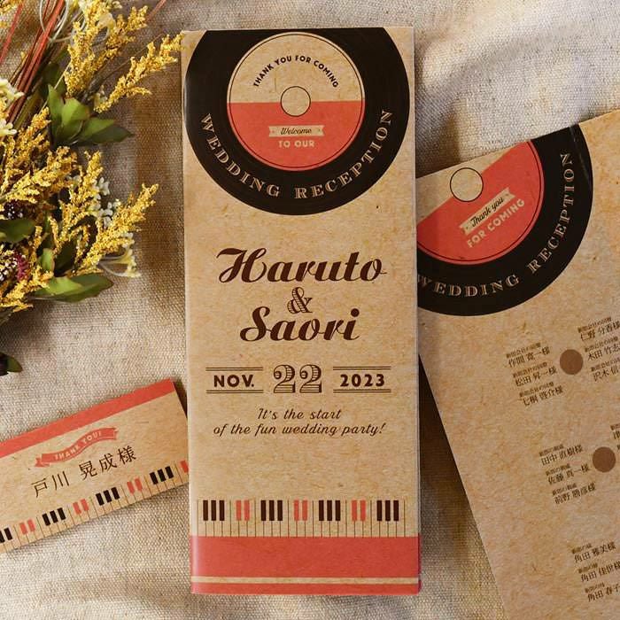 他の画像を見る 入力印刷付き 音楽好きの二人らしさが詰まった席次表 【完全お任せ】ミュージックSTYLE席次表(入力・印刷込) 定価 ¥ 880 のところ 販売価格 ¥ 770 税込 商品について 閉じる 音楽好きの二人におすすめの個性が光る席次表。まず目に飛び込んでくるのはレコードのデザイン。よく見るとあちこちに鍵盤があしらわれていたり、音楽好きのためのこだわりが満載です。 詳細を見る お気に入り登録