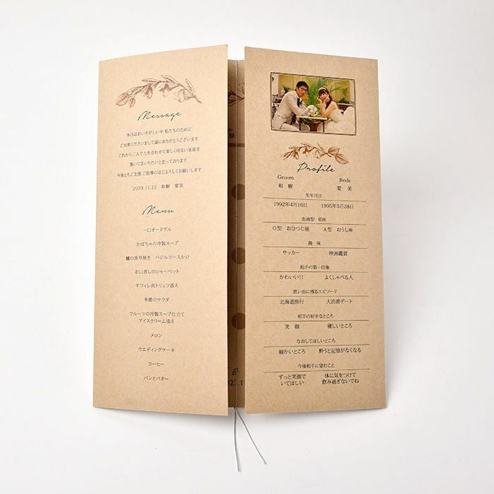他の画像を見る 入力印刷付き 「シエラリーフ」席次表(入力・印刷込)完成品オーダー 定価 ¥ 935 のところ 販売価格 ¥ 825 税込 商品について 閉じる 繊細なタッチで描かれた上品なリーフデザイン。ナチュラルな質感とぬくもりのある雰囲気のクラフト紙を、リーフデザインを施したトレーシングで包んで。クラフト紙なのにカジュアルすぎない、上品な席次表です。 詳細を見る お気に入り登録