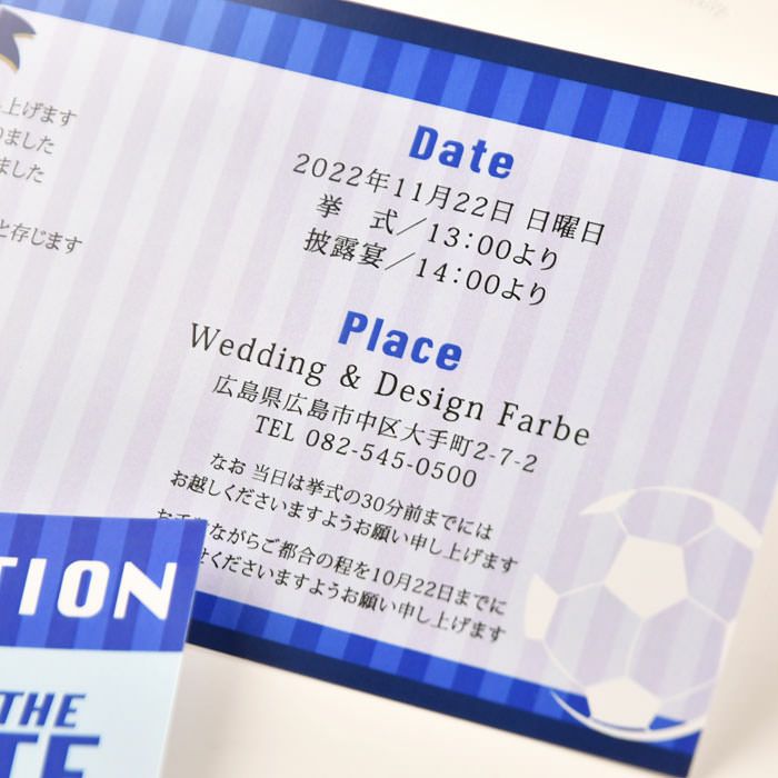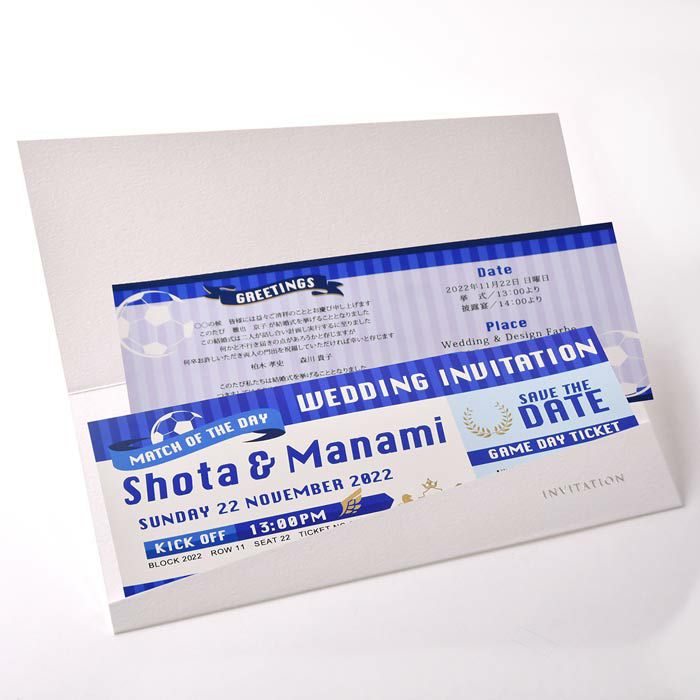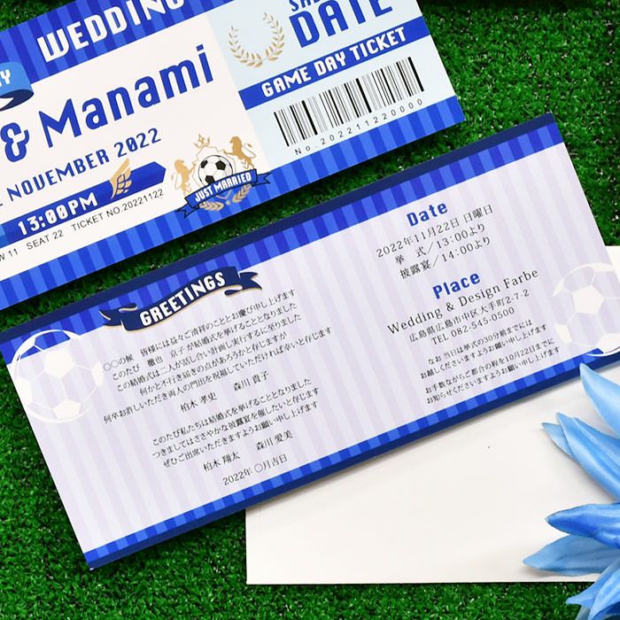 他の画像を見る 入力印刷付き サッカーファンのためのこだわり招待状 「サッカー観戦チケット風」結婚式招待状10部~(入力・印刷込) 販売価格 ¥ 11,000 税込 〜 販売価格 ¥ 税込 詳細を見る お気に入り登録