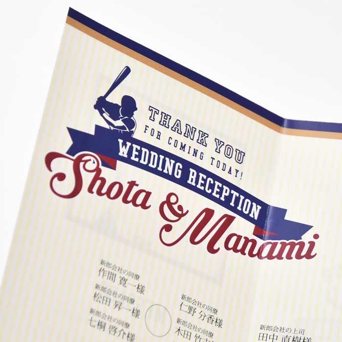 他の画像を見る 入力印刷付き 野球テーマのおしゃれ席次表 【完全お任せ】野球STYLE席次表(入力・印刷込) 定価 ¥ 880 のところ 販売価格 ¥ 770 税込 商品について 閉じる 野球好きのお二人にぴったり!野球をテーマにしたおしゃれな席次表です。ボールやバット、グローブなどのモチーフがちりばめられ、野球愛があふれるデザイン。ボールの縫い目もデザインに盛り込まれています。 詳細を見る お気に入り登録