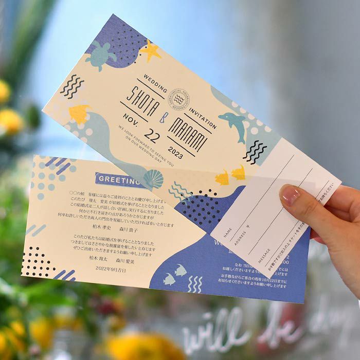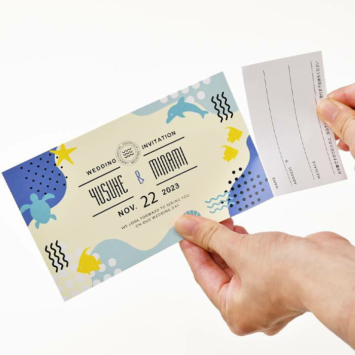 他の画像を見る 入力印刷付き シーサイドやリゾート婚にもおすすめ 半券付チケット風「アクアリウム」結婚式招待状10部~(入力・印刷込) 販売価格 ¥ 11,000 税込 〜 販売価格 ¥ 税込 詳細を見る お気に入り登録