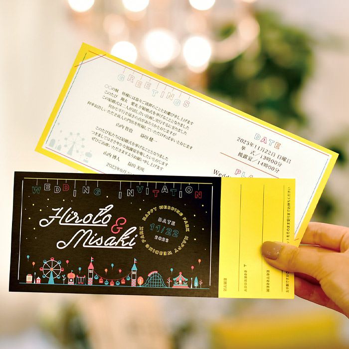 他の画像を見る 入力印刷付き わくわく感たっぷりの招待状 半券付チケット風「テーマパーク」結婚式招待状10部~(入力・印刷込) 販売価格 ¥ 11,000 税込 〜 販売価格 ¥ 税込 詳細を見る お気に入り登録