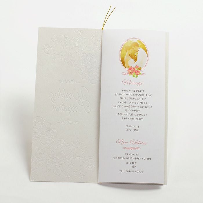 他の画像を見る 入力印刷付き 「フィオーレ」席次表(入力・印刷込) 定価 ¥ 880 のところ 販売価格 ¥ 748 税込 商品について 閉じる ローズをモチーフにしたスウィートかつ上品な雰囲気。ゴールドの箔が上品に輝き、バラの花に施された美しいエンボス加工も上質なアンティーク感を演出します。中面にもローズをちりばめた可憐なデザイン。 詳細を見る お気に入り登録