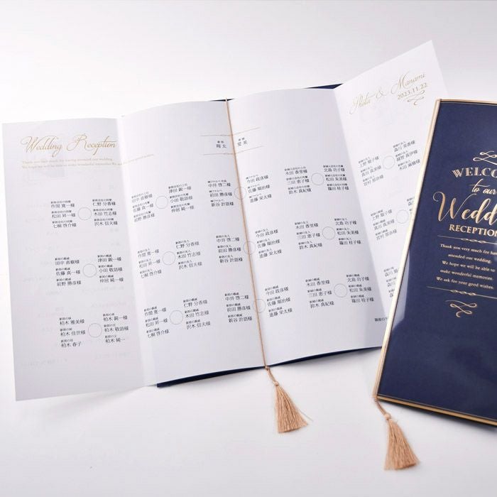 他の画像を見る 入力印刷付き 【印刷付】「クレール」席次表完成品オーダー(入力印刷込) 定価 ¥ 935 のところ 販売価格 ¥ 825 税込 商品について 閉じる 上品なゴールドの箔押しをほどこした透明カバーにタッセルが揺れて、一目で心をうばわれるワンランク上のラグジュアリー。ネイビー、ワイン、ホワイトの3色から選べます。美しい透明感と高級感が特徴の席次表です。 詳細を見る お気に入り登録