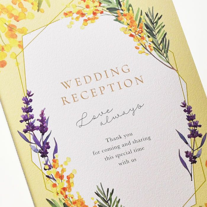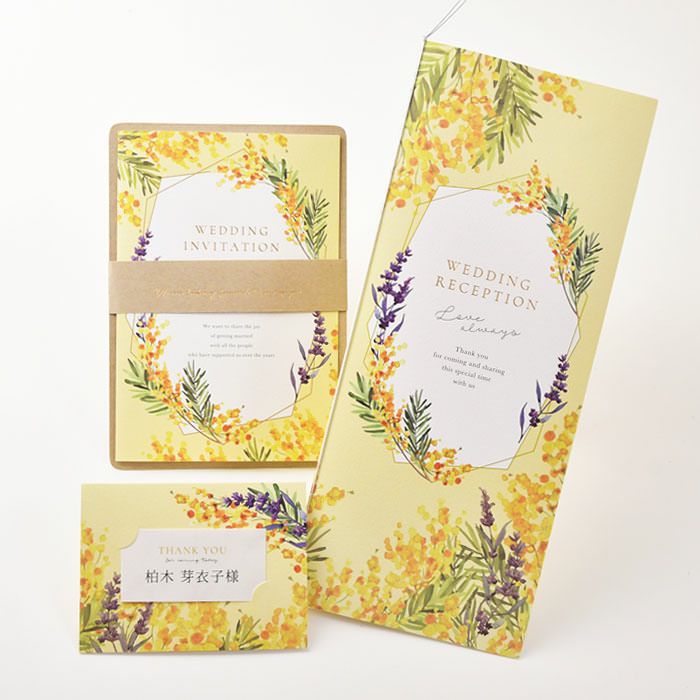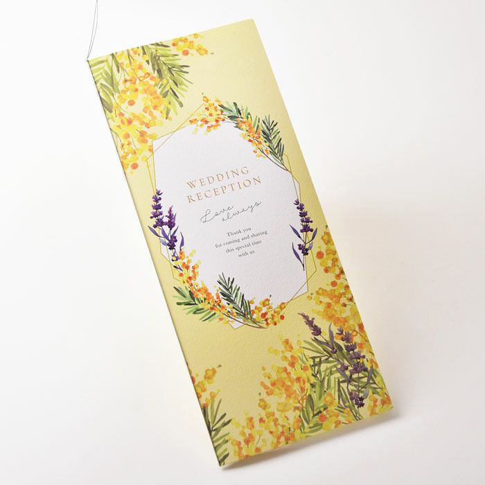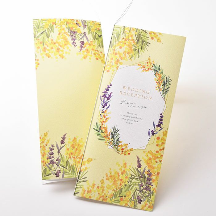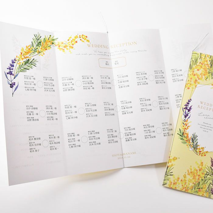 他の画像を見る 入力印刷付き 「ミモザ・ルフレ」席次表(入力・印刷込)完成品オーダー 定価 ¥ 880 のところ 販売価格 ¥ 770 税込 商品について 閉じる 愛と幸福を呼ぶとされるミモザと、献身的な愛が花言葉のラベンダーのデザインが結婚式にぴったり。明るいイエローの色使いでゲストテーブルをぱっと華やかに。ナチュラル感たっぷりのおしゃれな席次表です。 詳細を見る お気に入り登録