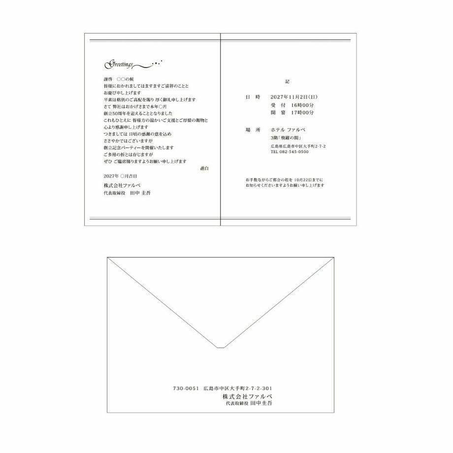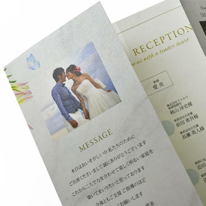 他の画像を見る 入力印刷付き 「ミュラル」席次表完成品オーダー(入力印刷込) 定価 ¥ 880 のところ 販売価格 ¥ 770 税込 商品について 閉じる アーチ型デザインが目を惹く洗練されたデザイン。ニュアンスカラーを上品にまとめておしゃれな印象に。レイアウトにも工夫を凝らし、写真入りのプロフィールやメニュー表も盛り込んだ席次表です。 詳細を見る お気に入り登録
