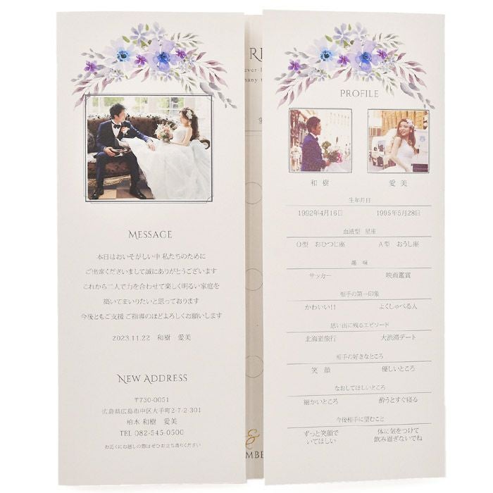 他の画像を見る 入力印刷付き 「カルムフラワー」席次表(入力・印刷込)完成品オーダー 定価 ¥ 880 のところ 販売価格 ¥ 770 税込 商品について 閉じる 大人っぽい落ち着きのあるフラワーデザイン。上質なペーパーを使用し、美しいアッシュグレーの色味と、優しい手触りのマットな質感が特徴。写真入りのプロフィールやメニュー表も一体型で内容も充実。 詳細を見る お気に入り登録
