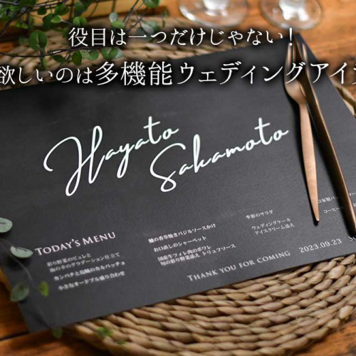 結婚式の準備でこだわりどころはいろいろとありますが、ペーパーアイテムもそのひとつですよね。中でもメニュー表は、お式当日にゲストが目にすることも多いのが…