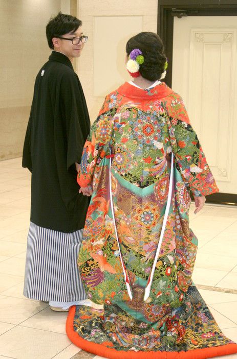 艶やか且つ美しいですね。なんと、全て手刺繍の色打ち掛けだそうです。その場がぱっと華やかになる、うっとりする美しさです。ゲストのみなさんからもとても好評だったようです♡♡♡