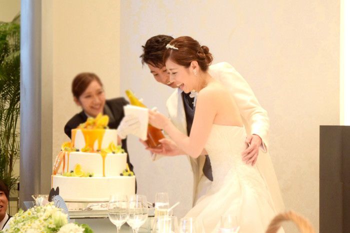 ケーキ入刀よりも動きがあってやってよかった!と言われたとおり、ケーキ入刀は手元がゲストから見えない場合が多いけど、これならバッチリ見えて、カラフルだし、写真も動画もすてきにおさまるはず♡いただいたお写真もとってもCUTE♡