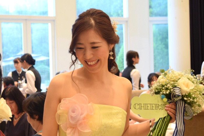 行ってよかった演出がフォトラウンド。お気に入りのブーケ、お気に入りの衣装、お気に入りのアクセサリー、お気に入りのDIYアイテムとともに大好きなゲストの方々と写真をとれとっても幸せだったようです。