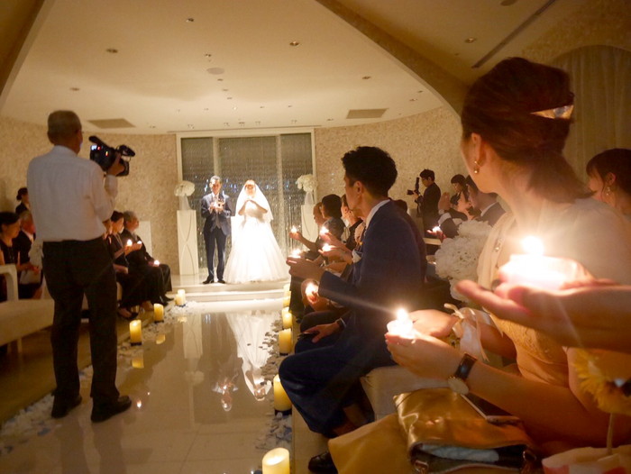挙式は真面目に!(笑)披露宴は楽しく笑顔いっぱいに!!!まったく違う空間のテーマにそって作りあげました!とおっしゃるように、チャペルではキャンドルを取り入れた大人な落ち着きのある演出を・・・