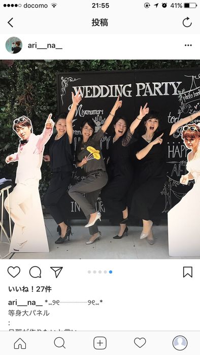 ウェルカムブースにおいた等身大パネルも大反響!楽しい!!!HAPPY!!!笑顔!!!がいっぱいの結婚式です♡