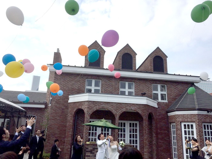 お天気に恵まれ、素敵な場所で大切な方々に囲まれて最高に幸せなひと時を過ごされたお二人。バルーンリリースの演出でなんとお二人のバルーンはしっかり繋がっていてお空でも離れなかった様子♡♡♡