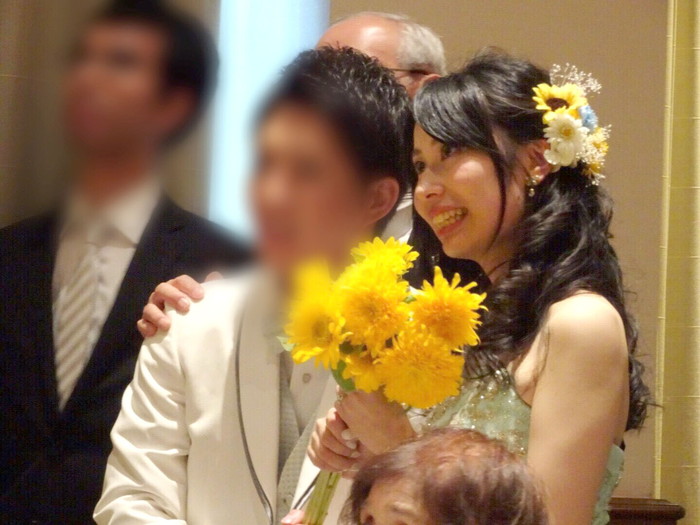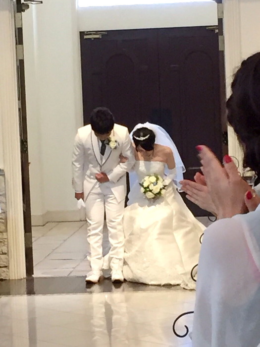 挙式入場のバージンロードでは、前を向いて歩いたため、強い印象になってしまいました。少し目線を下げればおしとやかに見えるので、意識してみてください。