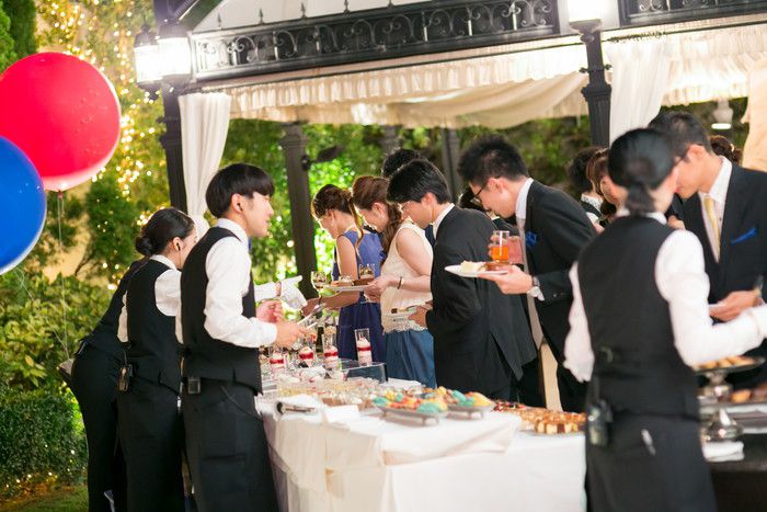 そして、ゲストに好評だったのは、ガーデンでのデザートブッフェ!おしゃれなディスペンサーのドリンクやスイーツをガーデンで振舞い、ガゼボにフォトスポットもセッティング。カラフルな装飾とアイテムで、思いっきり弾けた写真撮影が楽しめたそうです。
