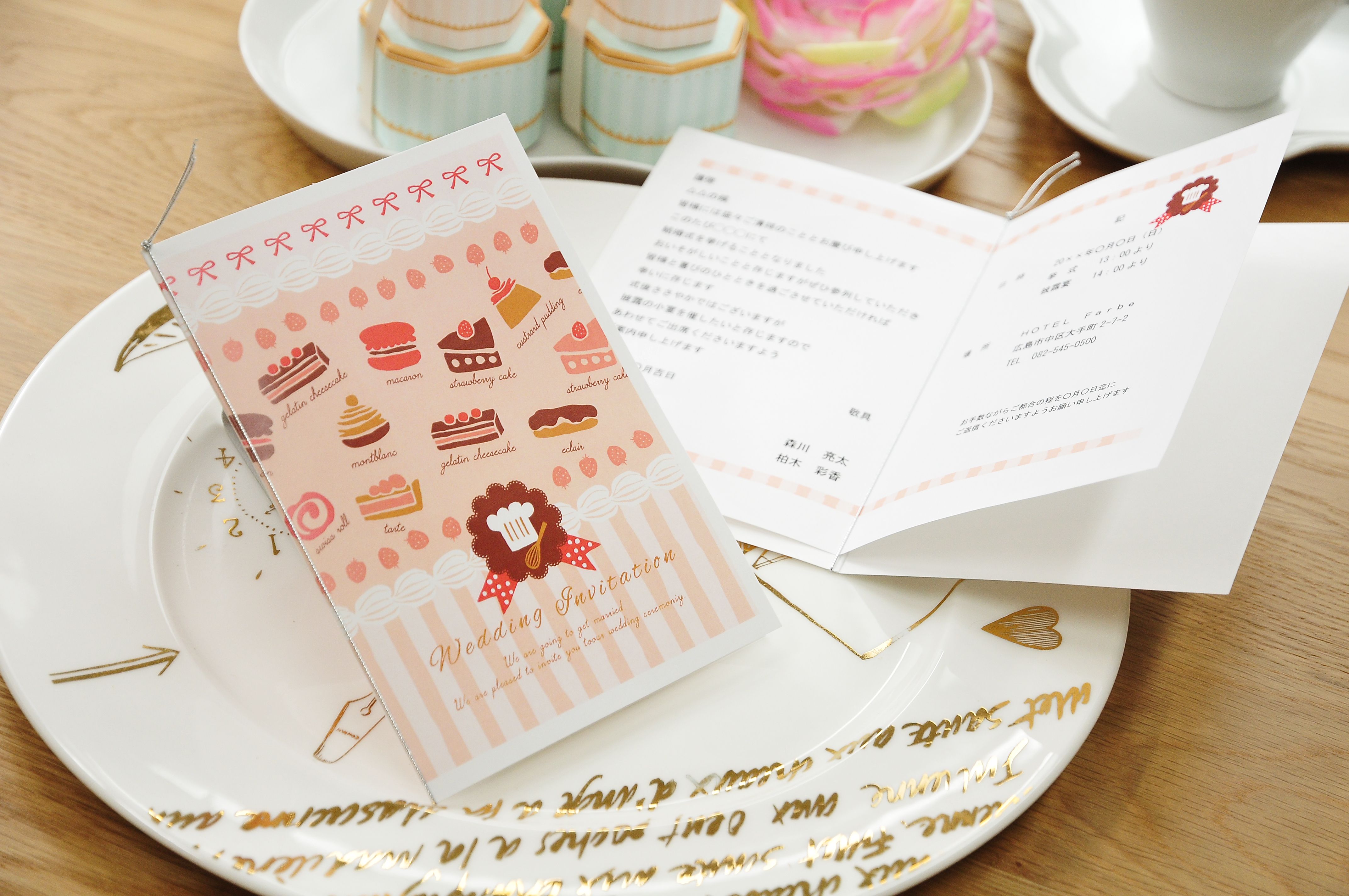 二人の共通大好きなものあまーいケーキ!?!職業はパティシエ!?!スイーツ大好きカップルさんにはキュートでポップなこちらの招待状はいかがでしょうか?