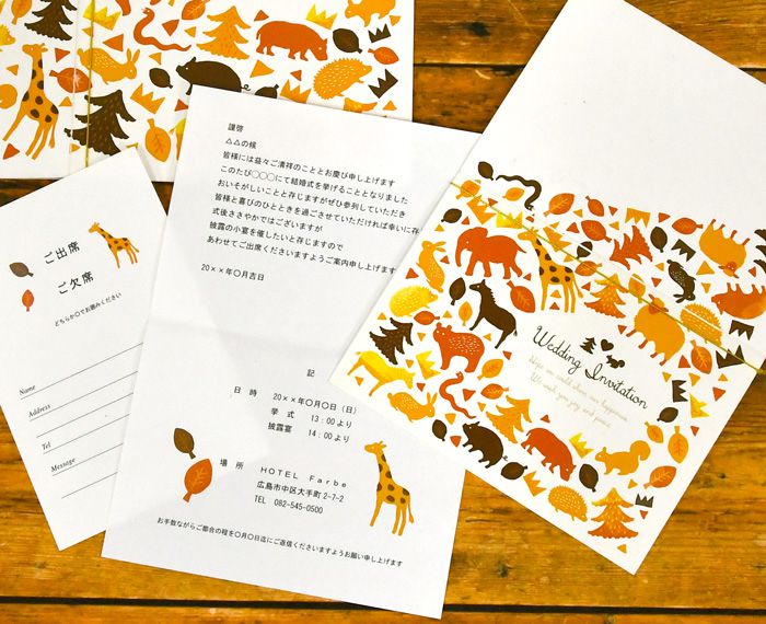 たとえばお勤め先が動物園、動物が大好きなんて方はこんな招待状はいかがでしょうか?可愛い動物たちが大集合!絵本のような世界観♡