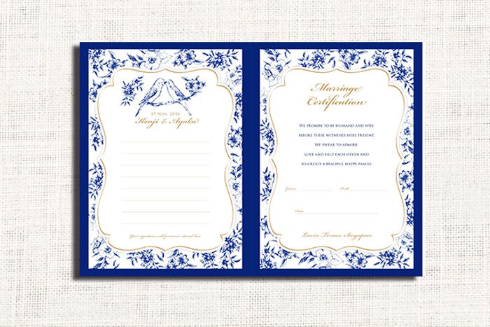 愛の誓いをセキセイインコとともに。セキセイインコを使った結婚証明書なんてみたことない!インコ自体のデザインも2タイプ。色が鮮やかなインコと線画で書かれたインコ。飼っているインコのイメージや好みでオーダーするのも◎