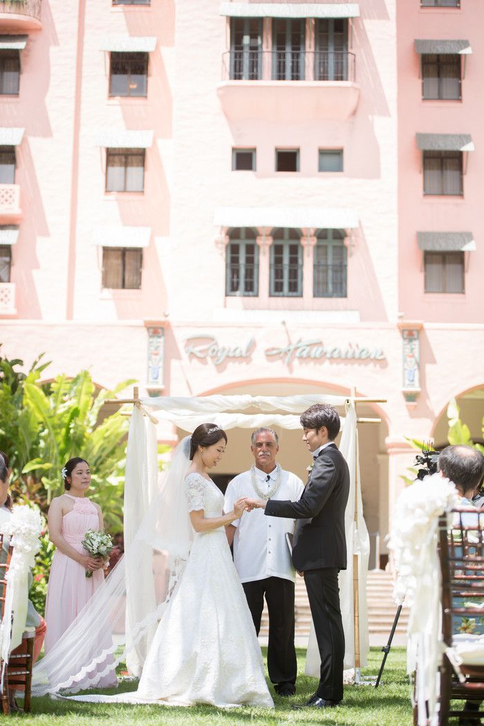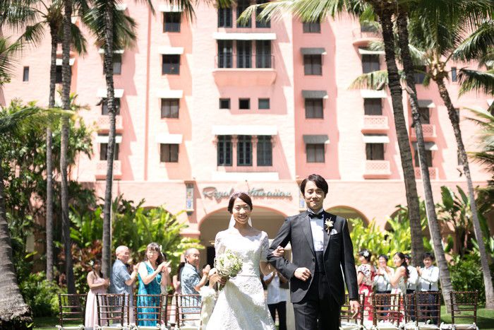 お二人が結婚式を挙げられたのは世界中のセレブから愛されるピンク色が特徴の ““ロイヤルハワイアンホテル”。