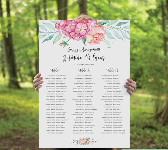 席次表といえば結婚式のマスト品。受付で手渡して、ゲストがパーティー会場のどこの席に座るかを示してくれるペーパーアイテムです。