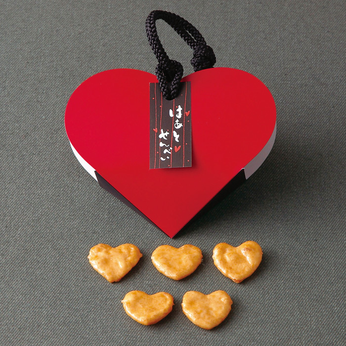 和風おやつであるせんべいも、ハート型ならこんなにキュート! 和洋のウエディングにもなじみやすいデザインです。和のおやつでは、かりんとう、こんぺいとう、金太郎あめ、小さなたい焼き、最中など。