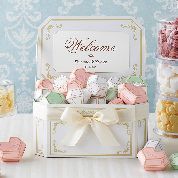 プチギフトとは、結婚式の披露宴や二次会のお見送りなどで新郎新婦からゲストに贈る小さな贈り物のこと。