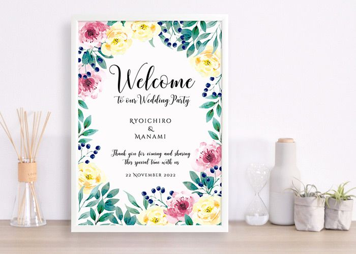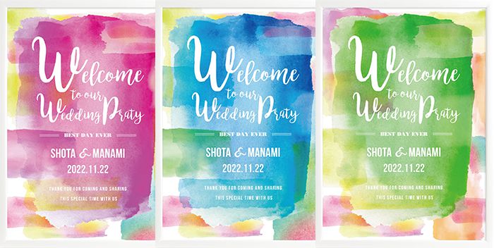 水彩系やリーフやお花が施されたデザインはガーデンウェディング、スタイリッシュウェディングと様々なスタイル結婚式にぴったりだし、式後自宅に飾っても違和感なく、オシャレなインテリアとして使えそう。