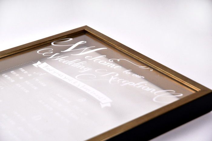 ウェディング専門店ファルベが販売しているシーティングチャートはオシャレなクリアボードタイプ。白文字印刷が可愛くて、透け感がたまらなくオシャレ。ガラスでなく、アクリルだから割れる心配もなく安心。