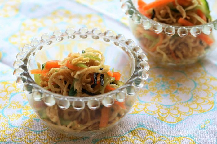 - キュウリとニンジンは千切りして塩(分量外)をふりしんなりしたら水気を絞る