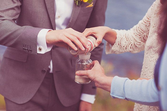 生まれた地の砂を合わせるという演出です。披露宴の最中のひとつの演出としてとりいれるのも良いですし、人前式の、儀式としてオリジナルなプログラムのひとつとして取り入れるのもシャッターチャンスにもなり、思い出にも残るので、とっても素敵です♡