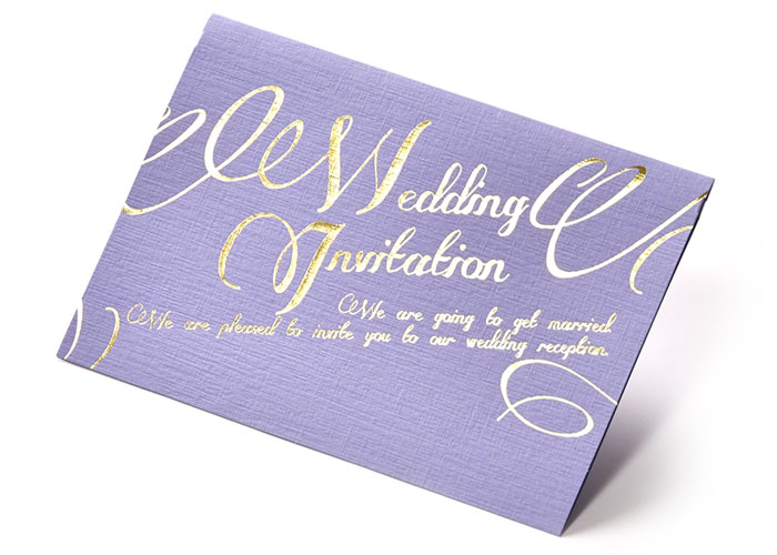 パープルの癒しの力を使って、ふんわり明るいパステルカラーにゴールド箔で品よく仕上げた招待状はいかが。