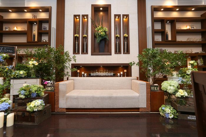 会場装飾は、グリーンを沢山取り入れたナチュラルな雰囲気に。アイテムの数々も、会場の雰囲気に合うものを選ばれました。