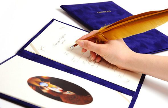 結婚式はお互いの気持ちをゲストの前で誓う大切な儀式。その際にサインする誓約書(結婚証明書)は二人が今後も幸せになることを誓う証でもあります。