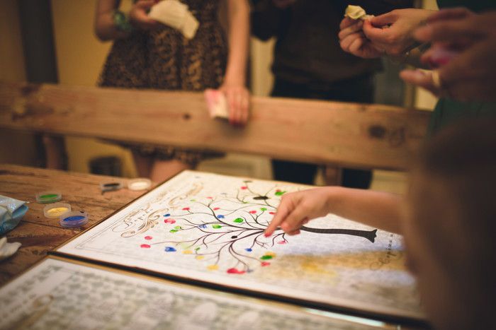日本でも定番化しているウェディングツリー。受付にて拇印を押すことで結婚の誓いの証人になってもらい、拇印の横に名前をサインすることでゲストブックとして使用されるケースもあります。