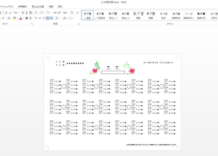 こちらを使ってぜひ、六つ折席次表に挑戦してみてくださいね。